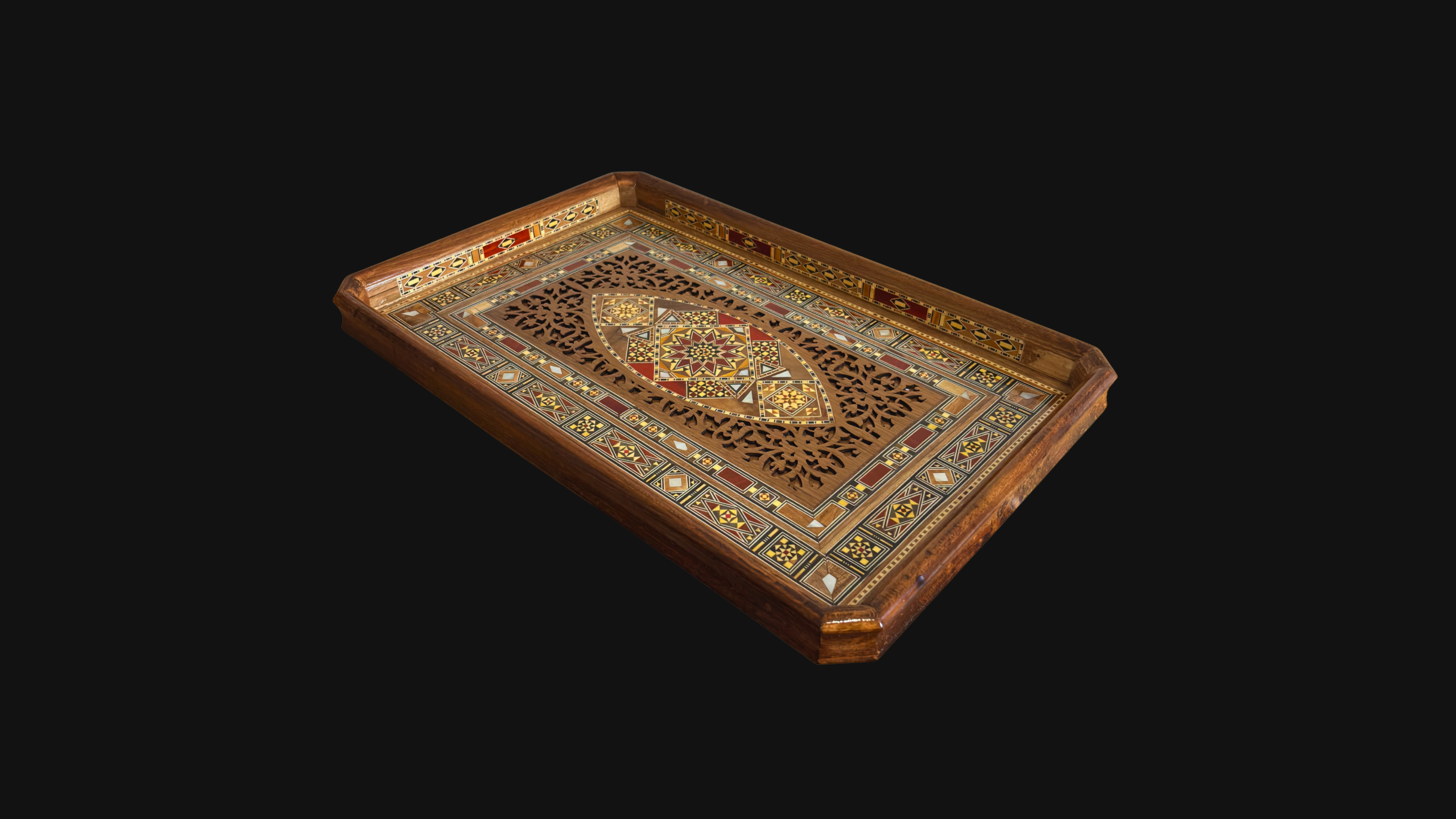 Bandeja Damasquina de Madera – Incrustación de Nácar & Tonos Naturales de Madera