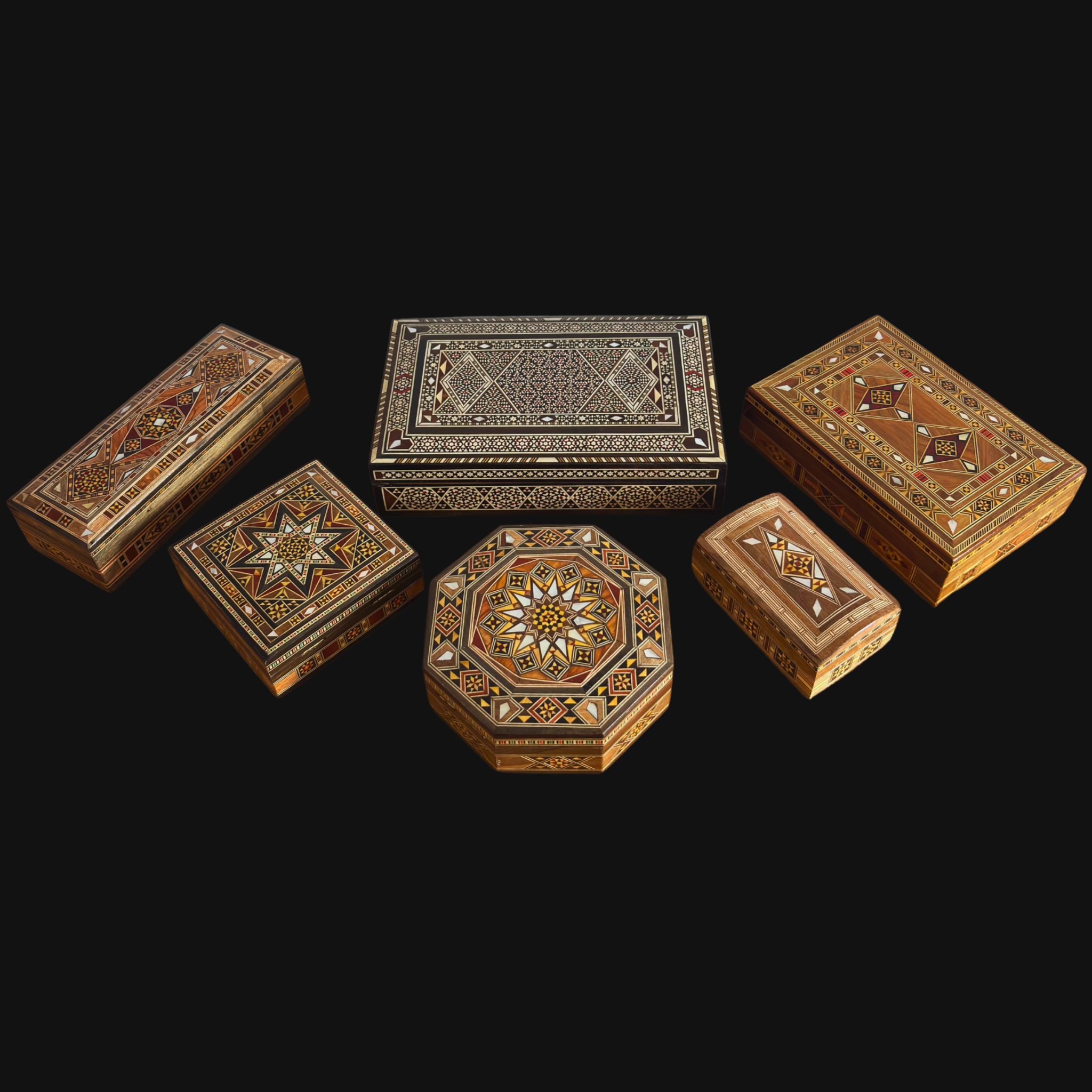 Patrones intrincados, maderas ricas, nácar brillante y detalles exquisitos — cada pieza es única.