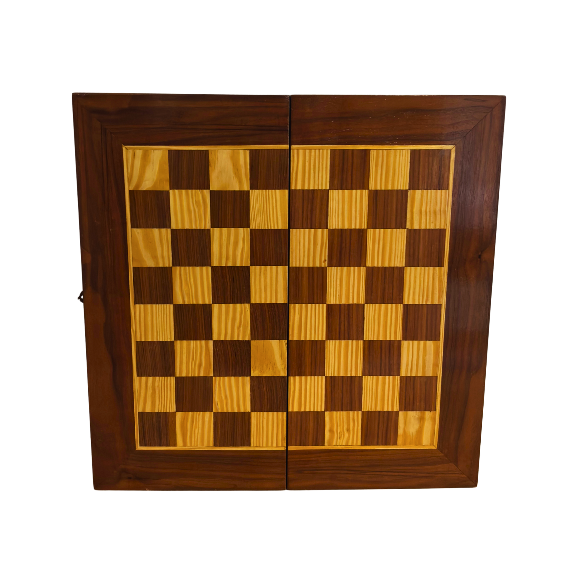 Este set especial incluye piezas de ajedrez y backgammon de madera, junto con dados — perfectamente combinados con el diseño elegante de la mesa.