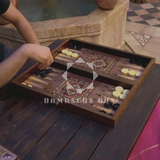 Mesa de Backgammon y Ajedrez Damasquina Hecha a Mano por Gaby Al Dayeh – Diseño Clásico