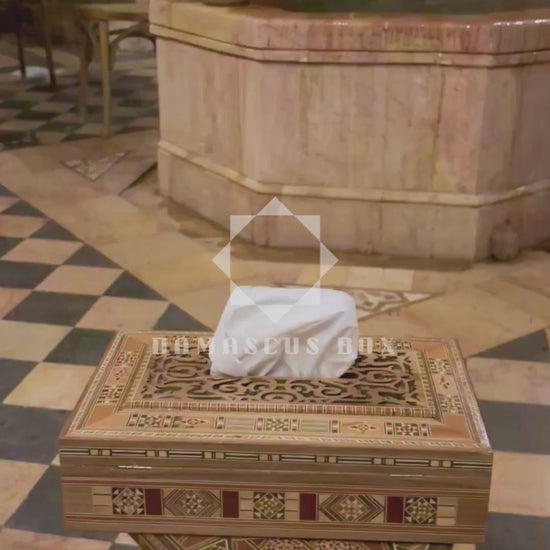 Esta elegante caja para pañuelos hecha a mano representa la perfección y armonía de la artesanía de Damasco.