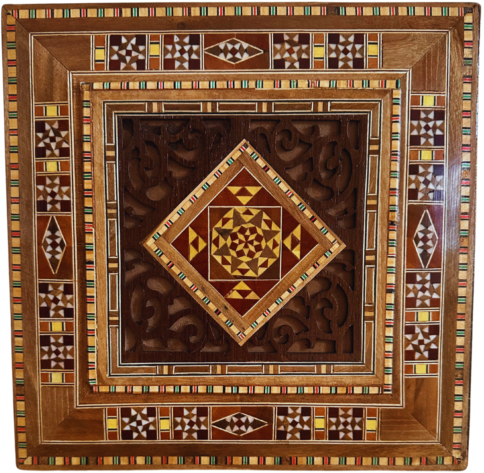 Illumina ogni occasione speciale con questa grande scatola quadrata a mosaico , realizzata artigianalmente con cura a Damasco in pregiato legno di faggio . Il suo design affascinante e la sapiente lavorazione artigianale la rendono un prezioso e pratico contenitore per gioielli, piccoli oggetti, sigari o ricordi preziosi.