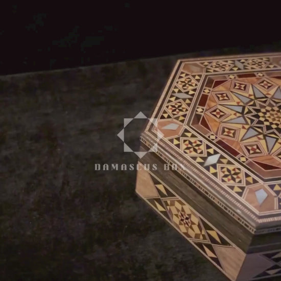 Damascene mozaïekdoos, parelmoer doos, Syrisch vakmanschap, oosterse houten doos, luxe handgemaakt cadeau, Damascus Box