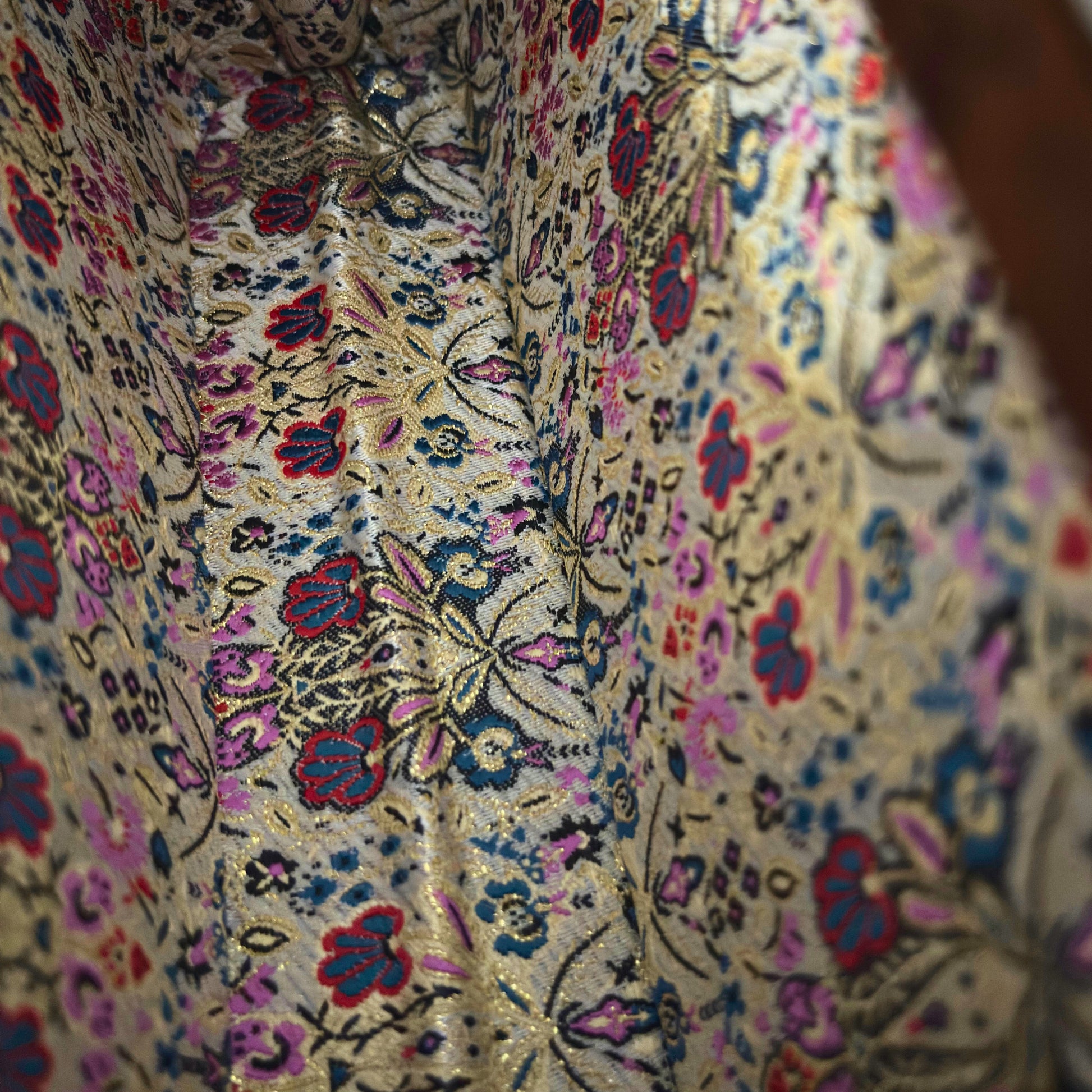 Materialen: Notenhout, parelmoer, brokaat, parelmoeren handvat