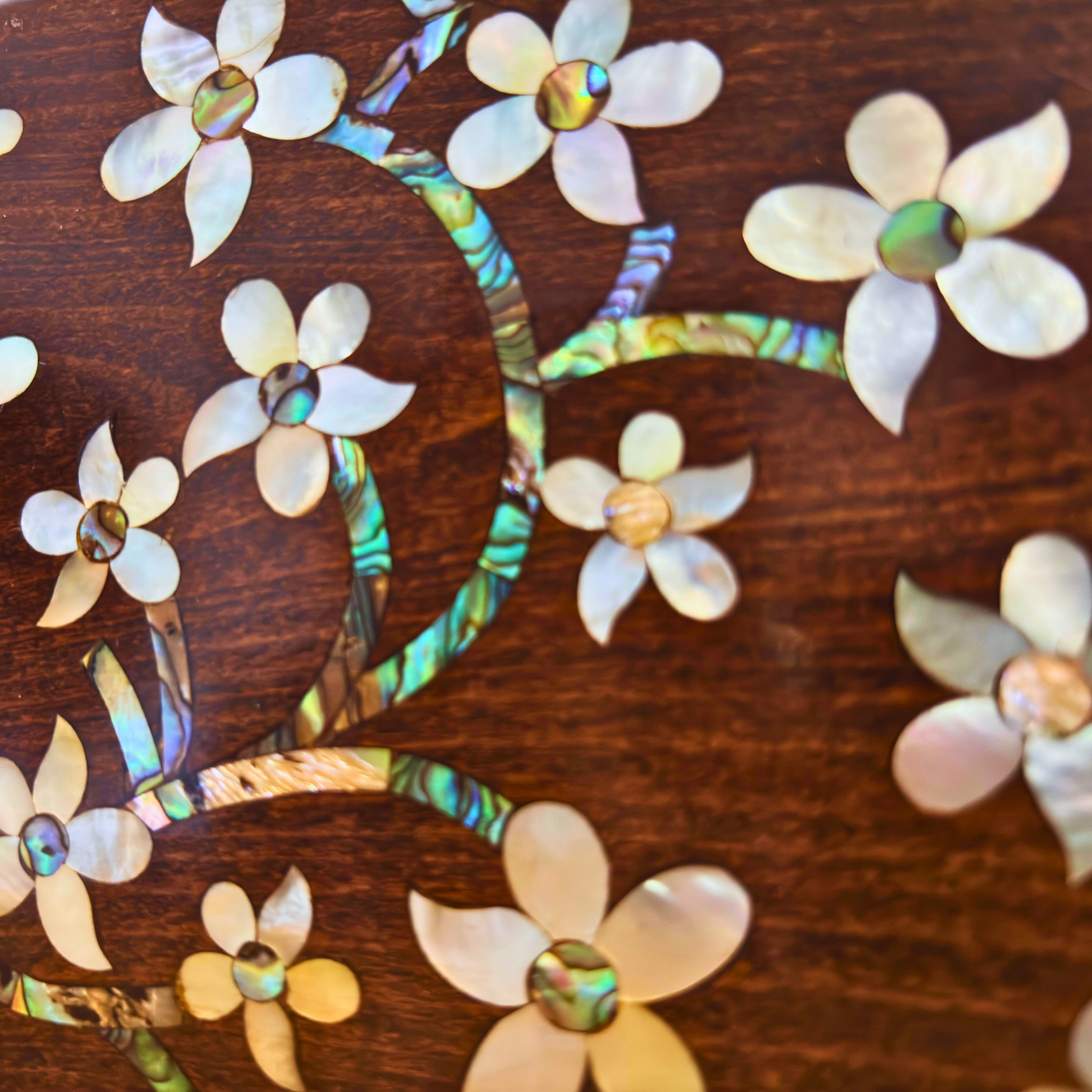 Carved from fine walnut wood and adorned with shimmering mother-of-pearl, it reflects the poetic elegance of oriental craftsmanship.