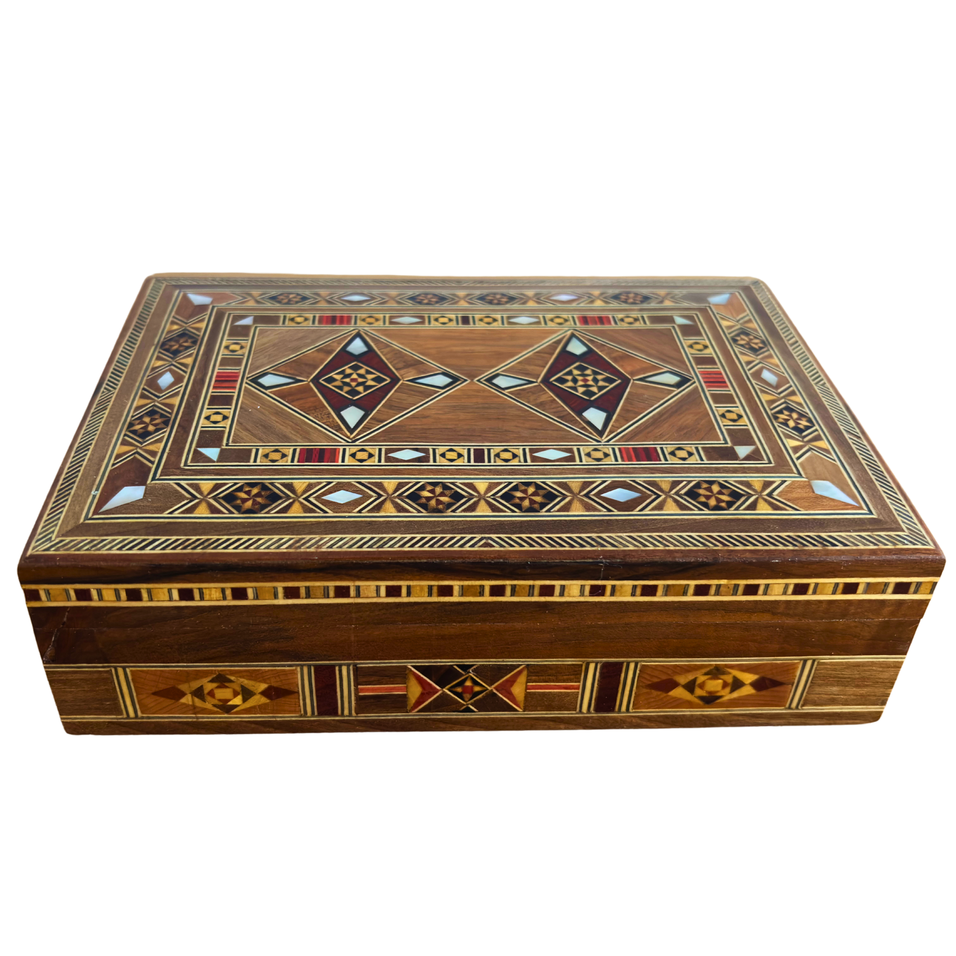 Caixa artesanal de mosaico para joias, incrustação em madrepérola, baú de madeira de luxo para lembranças, arte damascena -Edição Limitada-